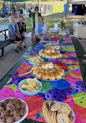 Full disclosure: This photo is from the Dinkeroo last month, but Kathy Kincannon’s food is always exceptional and Saturday at the Geezer Games was no exception. From left, Cherie Peterson, Kathy, Pat Theno, Jerry Beth Owen.