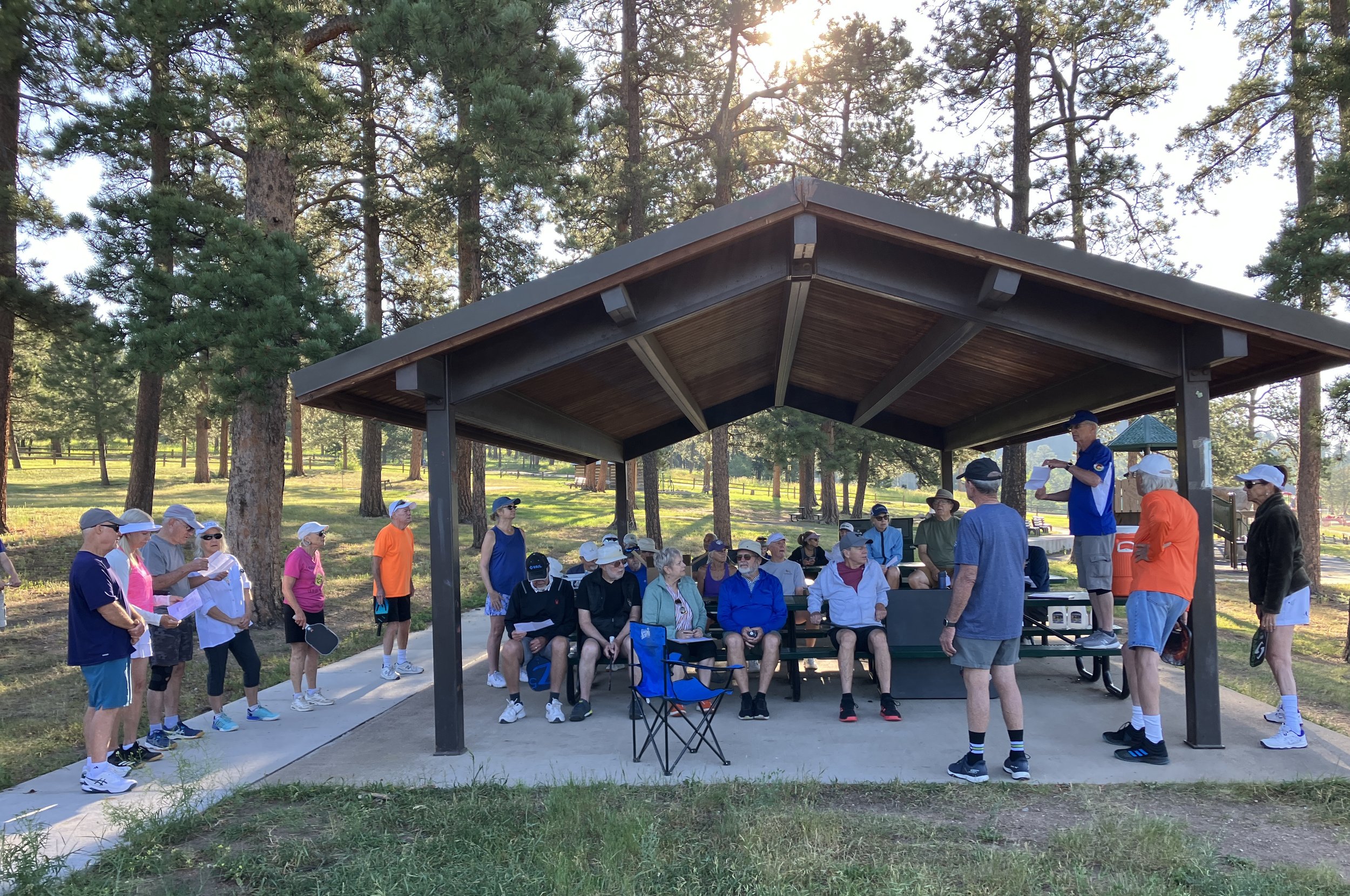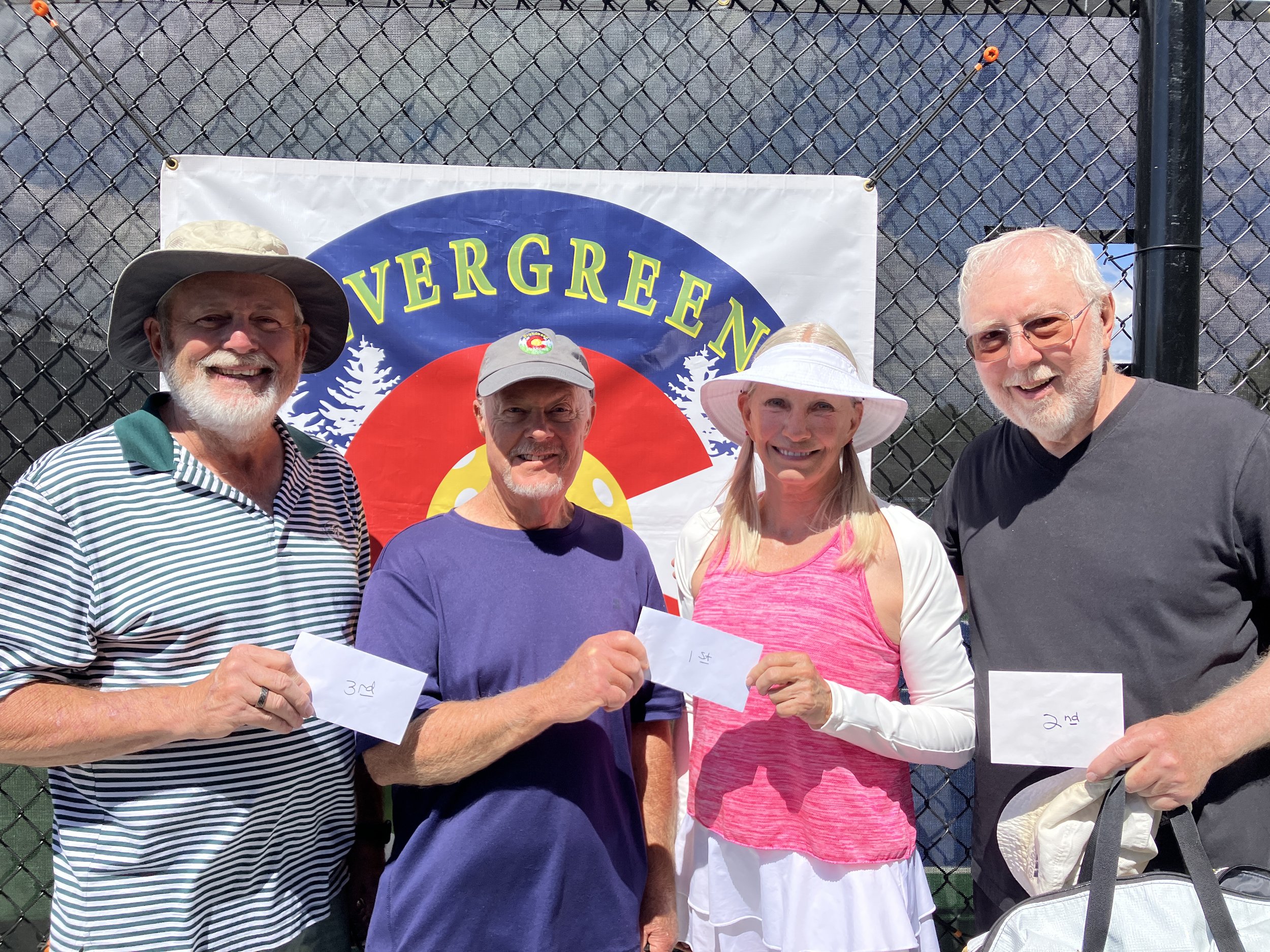 Tournament director Mick Pearce thanked the scorekeepers: Sally Griggs, Giuliano Hofling, Stephanie Gruber and Dee Miles. “You all did a super job at the Geezer Games,” he said. “You herded your cats beautifully, kept things on track, and generally had everything under control. As always, your efforts are very much appreciated.”