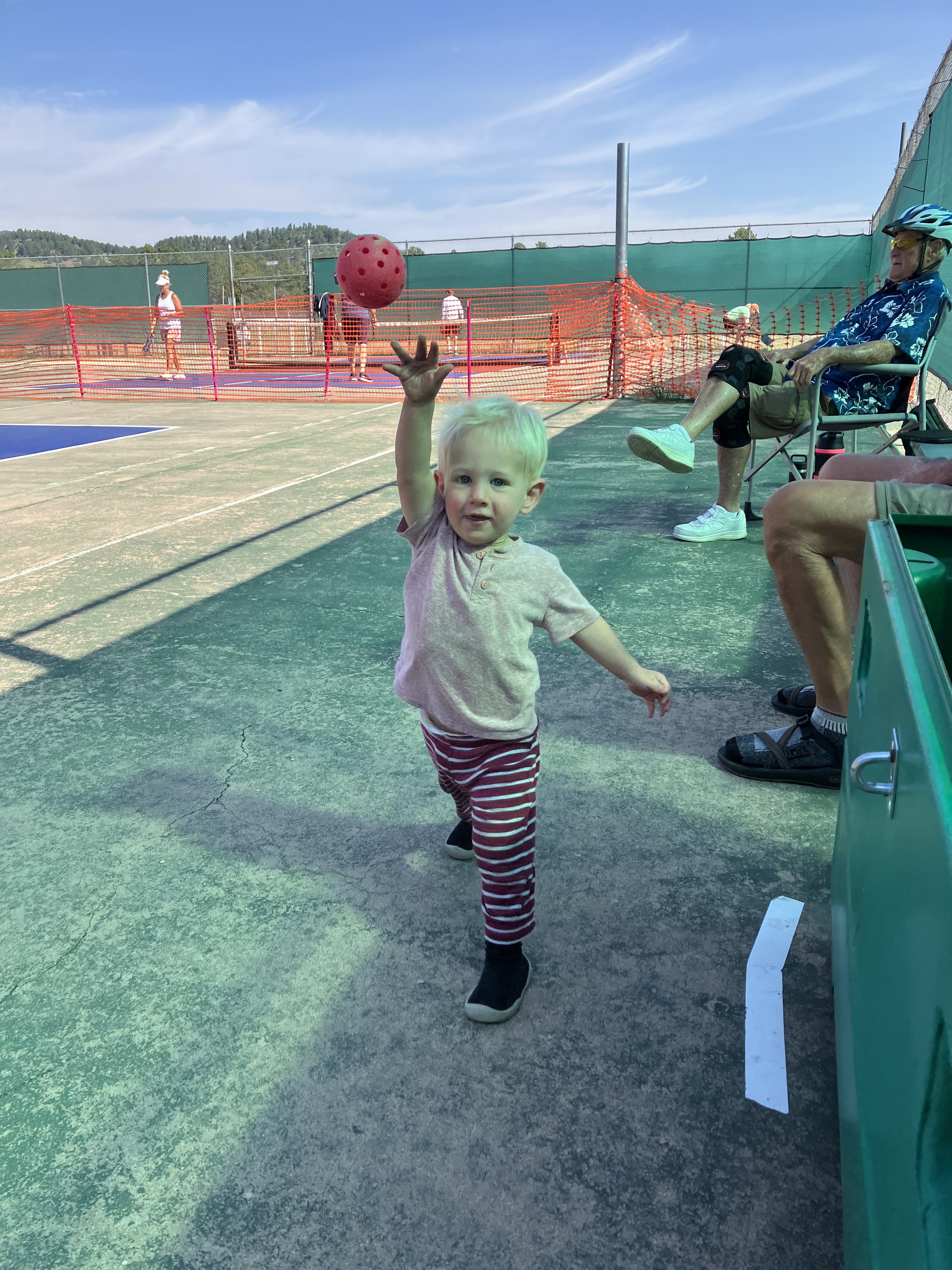 Don and Deb Marshall’s grandson Cedar, right, made use of the EMS courts last week.