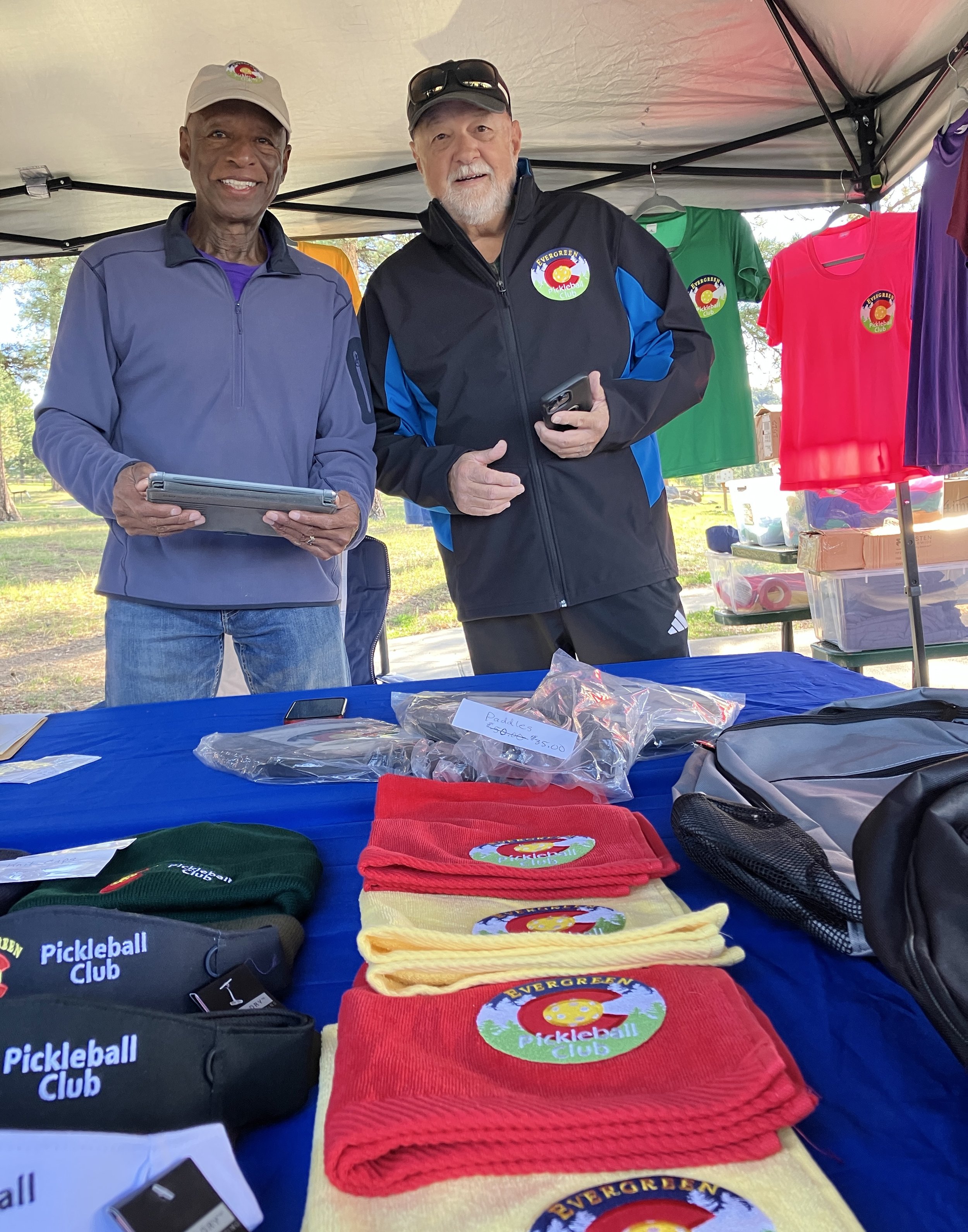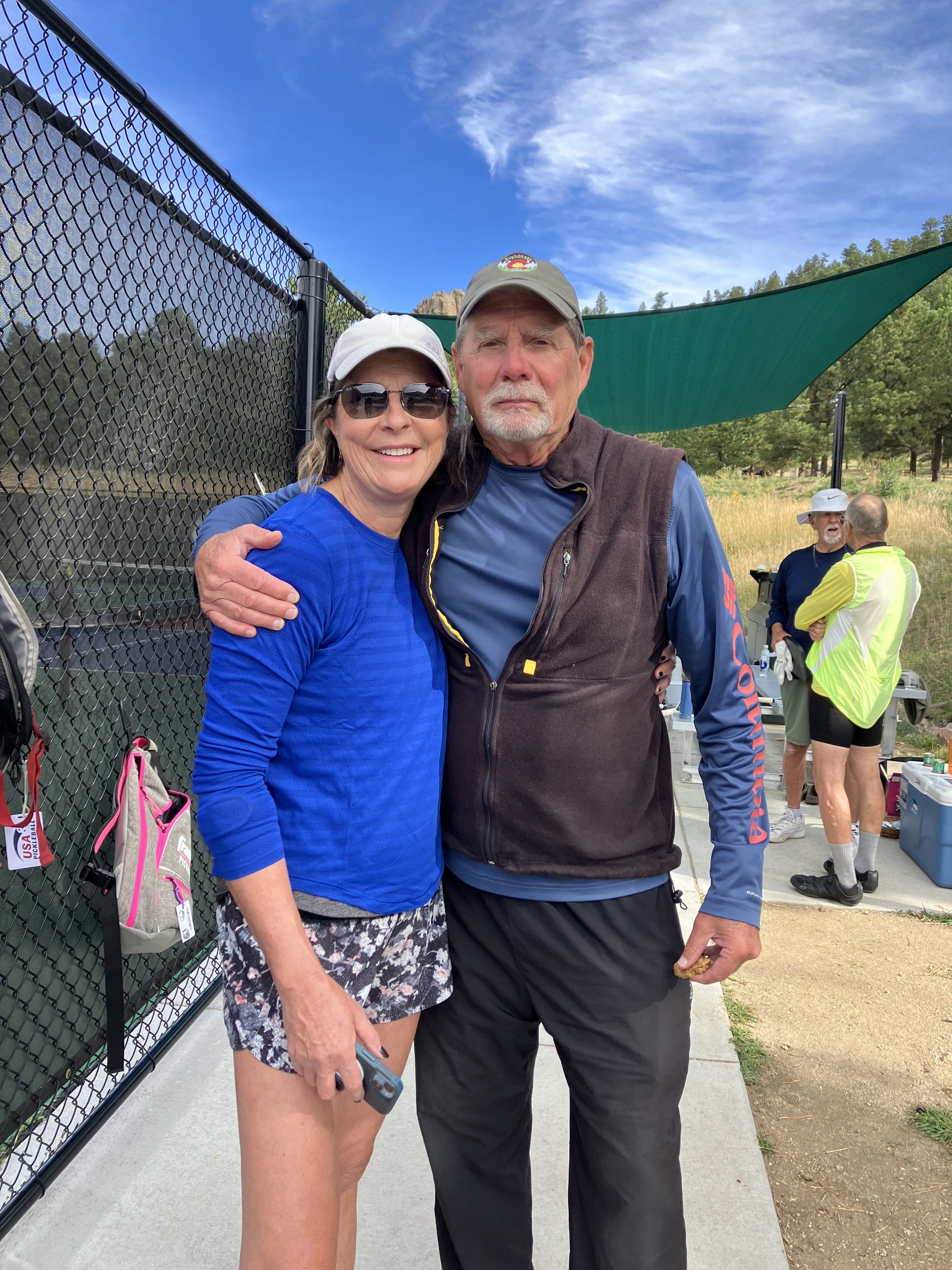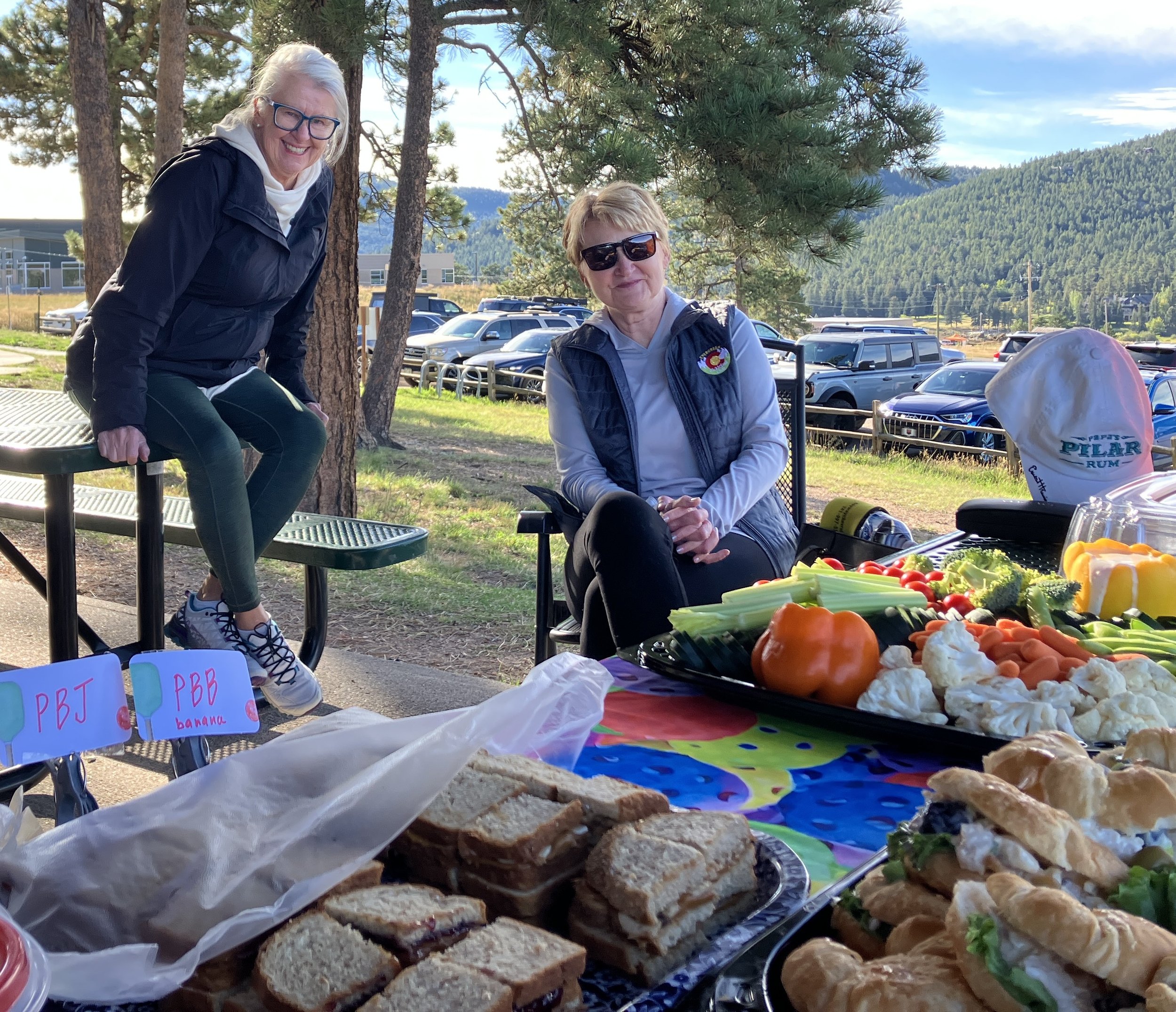Bonnie Lee, left, and Lindy Groscurth were part of the group that stepped in to help Jeri Herskovits provide food for the tournament. Jeri was sidelined by a “mishap” that resulted in a badly broken arm (not pickleball-related). Brian Pilcher, Jerry Beth Owen, Sally Griggs and Pat Theno made it happen along with Bonnie and Lindy.