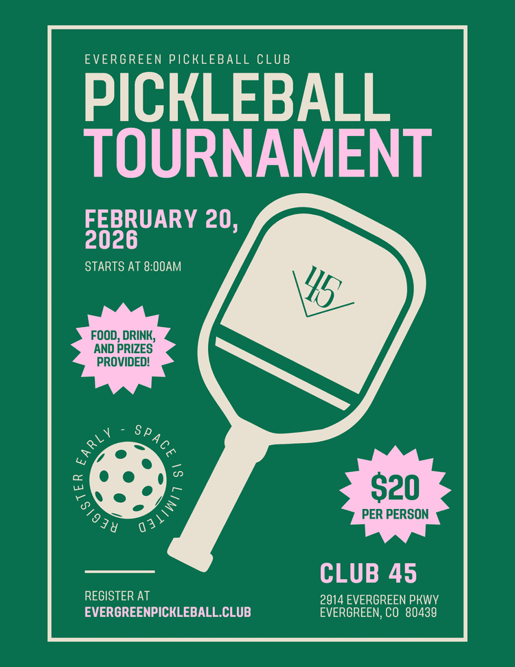 It’s taking place at Club 45 (the “bubble”) here in Evergreen. You do NOT have to be a member of Club 45 to play in the tournament.